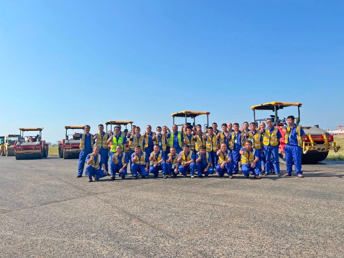 24小時(shí)不停航施工,現(xiàn)場人員輪班堅(jiān)守。徐工成套道路機(jī)械設(shè)備,主要負(fù)責(zé)上面層施工,攤鋪厚度6.5cm。10臺(tái)XD133D雙鋼輪壓路機(jī)、7臺(tái)RP1253T攤鋪機(jī)、1臺(tái)RP1355T攤鋪機(jī)披荊斬棘、義無反顧加入戰(zhàn)場,跑出建設(shè)“加速度”!
