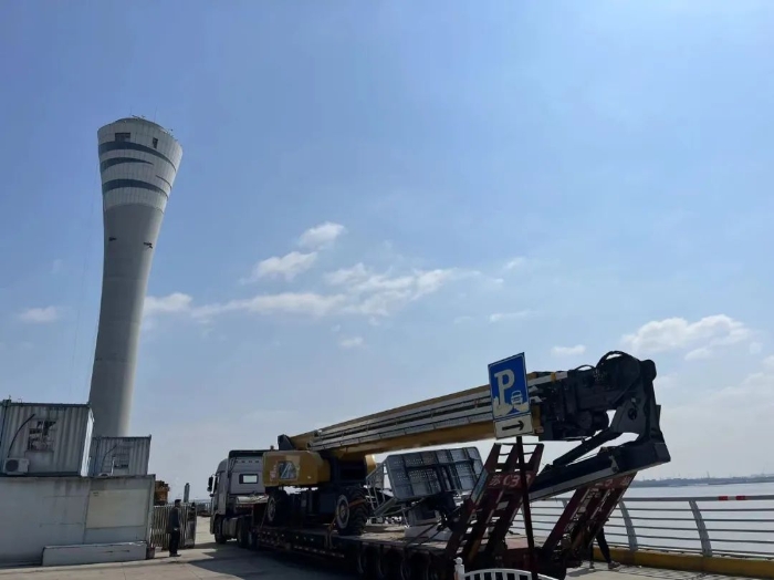 據(jù)悉,此次徐工XGS70K接到的任務(wù)是在25天時間之內(nèi),完成上海吳淞口國際郵輪港燈塔4個引導(dǎo)燈安裝和外墻4個直徑近兩米破損面的修補(bǔ)。