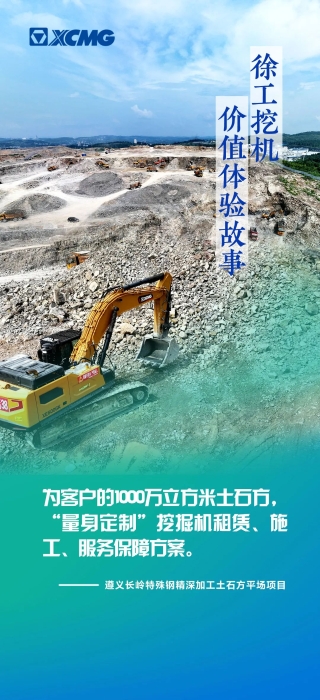 貴州遵義長(zhǎng)嶺特殊鋼精深加工技改項(xiàng)目為貴州省2023年重點(diǎn)項(xiàng)目,土石方平場(chǎng)量1000多萬(wàn)方,在整個(gè)建設(shè)過(guò)程中,徐工挖機(jī)為客戶(hù)“量身定制”租賃、施工、服務(wù)保障方案。