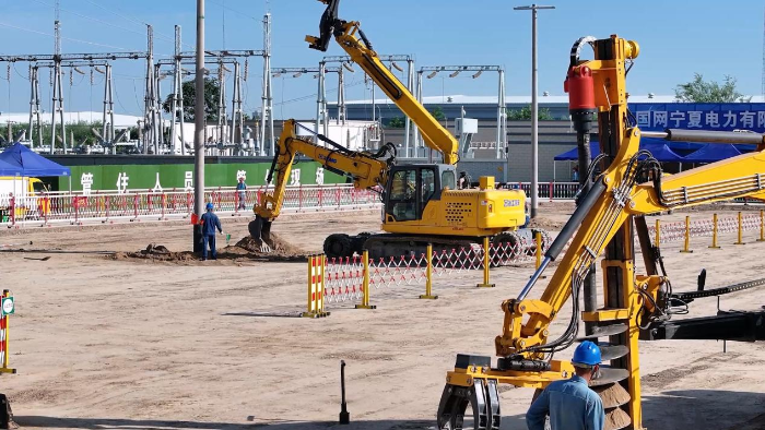 在寧夏現(xiàn)場的應(yīng)用中,徐工開挖立桿一體機(jī)的安全性和效率出色,完成一套完整工序(挖坑-放置預(yù)制件-抓桿-豎桿-回填土-夯實(shí))僅需18分鐘,比競品效率快三分之一。