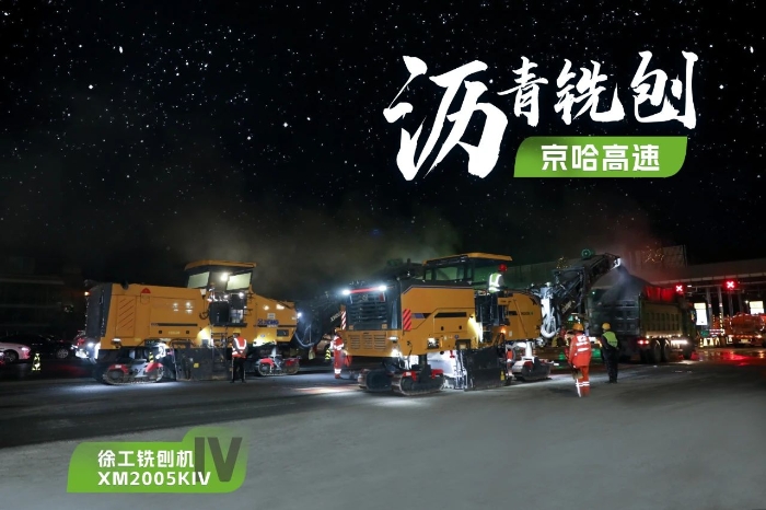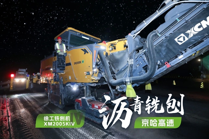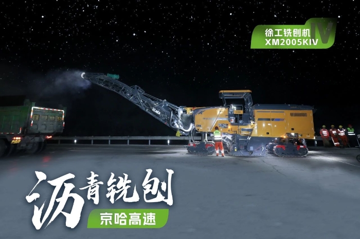 此次施工項目為京哈高速的路面改擴建工程,銑刨深度5cm,銑刨速度25m/min。由于北京地區(qū)日間車流量大,交通壓力較大,因此施工方選擇在夜間施工,日間恢復(fù)行車,盡量避免施工給交通帶來影響。由于夜間施工更加考驗施工設(shè)備的穩(wěn)定性、施工質(zhì)量的可靠性,施工方選擇了兩臺徐工兩米銑刨機作為本次高速公路養(yǎng)護工程的銑刨設(shè)備,分別為XM2005KIV和XM200KII,同時進行銑刨作業(yè),并肩作戰(zhàn),按下施工進度快進鍵。