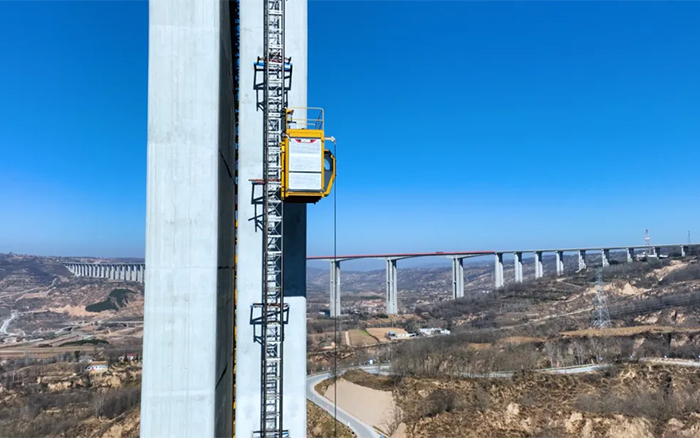 除了群塔助力,馬蓮河特大橋項(xiàng)目還使用了六臺(tái)徐工SC200/200FS1施工升降機(jī),零停機(jī)、零故障,整機(jī)性能優(yōu)越,應(yīng)用新型高可靠傳動(dòng)機(jī)構(gòu)及高能效齒輪減速電機(jī),實(shí)現(xiàn)平穩(wěn)運(yùn)行,保障鋼筋、水泥等建筑材料運(yùn)輸安全,提高施工效率。