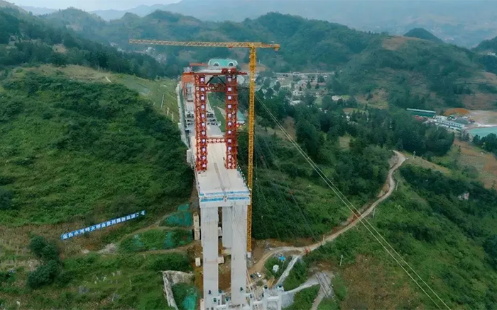 “這座橋工期緊,技術(shù)難度大,吊裝過程中構(gòu)件結(jié)構(gòu)重、空間姿態(tài)調(diào)整難度高,給項目施工帶來了一定困難?!卑姿犹卮髽蝽椖康匿摻Y(jié)構(gòu)負(fù)責(zé)人毛宗宇說。白水河特大橋主橋采用跨徑340m的上承式鋼管混凝土變截面桁架拱橋,全橋共設(shè)計58個吊裝節(jié)段,在百米高空中完成拼裝,而誤差要保持在毫米級,這些為塔機(jī)施工帶來了高難度挑戰(zhàn)。