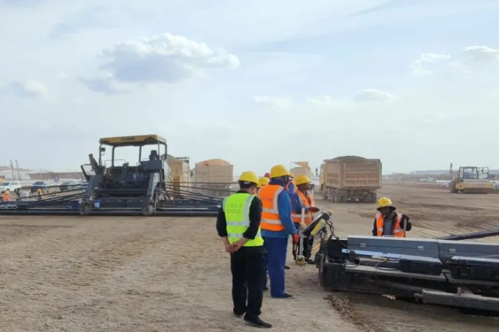在跑道鋪設(shè)的施工現(xiàn)場(chǎng)