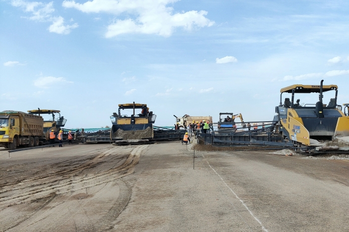 跑道要具備良好的平整性和光滑性,需承受高強(qiáng)度的飛機(jī)起降沖擊,保證極端氣候條件下的使用性能不受影響。徐工攤鋪機(jī)以先進(jìn)的技術(shù)強(qiáng)大的性能、出色的施工表現(xiàn),確保了每一個(gè)工序的精準(zhǔn)、高效和安全推進(jìn)。