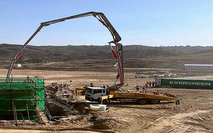 此次工程不僅面臨施工設(shè)備和材料供應(yīng)奇缺等難題,且厄籍職工沒有大型混凝土澆筑經(jīng)驗,加之項目澆筑需要長時間、大方量的持續(xù)性作業(yè),施工困難重重。徐工HB43V泵車和徐工攪拌車協(xié)力共進,完美應(yīng)對此次澆筑任務(wù)。