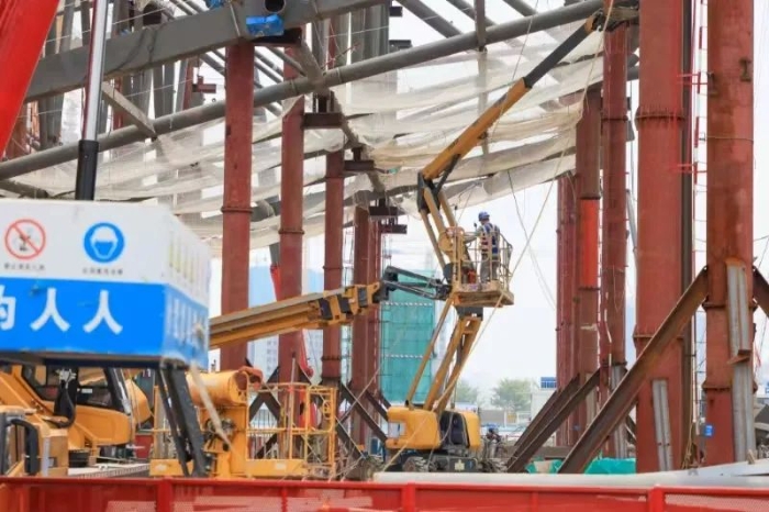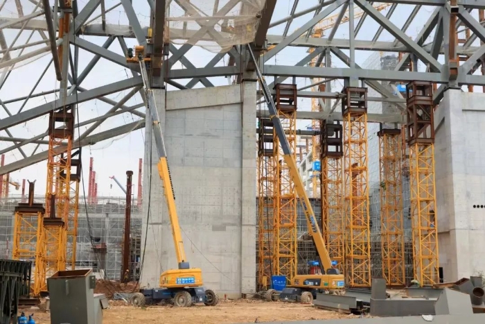忙碌的工地上,隨處可見(jiàn)“徐工金”辛勞的身影。此次參與施工的有四十余臺(tái)徐工高空作業(yè)平臺(tái),高度從22米到40米不等,主要負(fù)責(zé)場(chǎng)館鋼結(jié)構(gòu)的安裝工作。