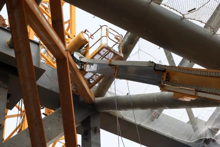 此次施工的主力產(chǎn)品為徐工的XGS22K 、XGS28K、XGS40K三款車(chē)型,這三款車(chē)型作業(yè)幅度分別是17.2米、22米和24.9米,再加上帶有一節(jié)小飛臂的設(shè)計(jì),使得其跨障能力強(qiáng),更適宜現(xiàn)場(chǎng)這種復(fù)雜且密集的鋼結(jié)構(gòu)作業(yè)。160°的平臺(tái)回轉(zhuǎn)角度,也賦予了它更加靈活的使用方法。