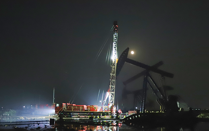 在中國北部某開采油田現(xiàn)場(chǎng),一場(chǎng)“綠色修井”作業(yè)正如火如荼。20余米的井架高聳佇立,井口流出的油水經(jīng)自動(dòng)導(dǎo)流裝置流至集油槽中,點(diǎn)滴不落地。