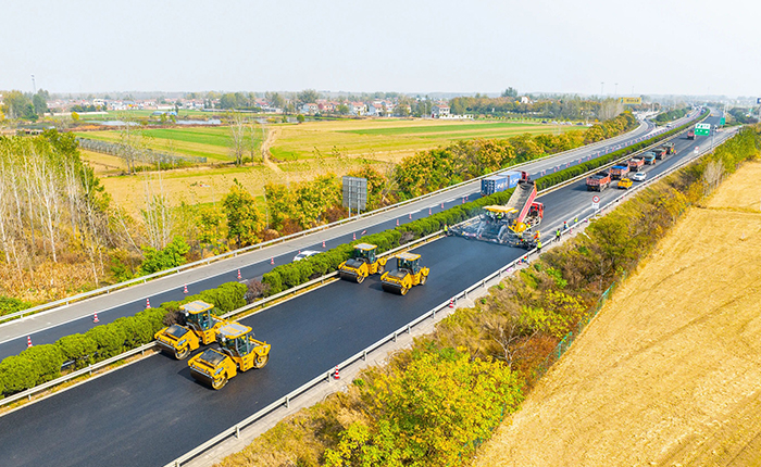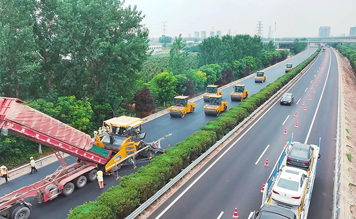 自2022年下半年開(kāi)始,徐工成套道路機(jī)械就已多次參與過(guò)連霍高速的施工工作,受到業(yè)主方的肯定。2024年下半年,徐工道路明星“工友團(tuán)”再次閃亮登場(chǎng),憑借自己的智慧“大腦”,在連霍高速的養(yǎng)護(hù)工程建設(shè)中大放異彩。施工由徐工超大寬度攤鋪機(jī)RP2405和壓路機(jī)XD133S這兩款高性能設(shè)備聯(lián)袂,在攤鋪厚度為100px的瀝青上面層進(jìn)行高效施工。憑借超強(qiáng)的作業(yè)能力和先進(jìn)可靠的產(chǎn)品性能,在高速路面上精準(zhǔn)實(shí)現(xiàn)一次攤鋪成型。