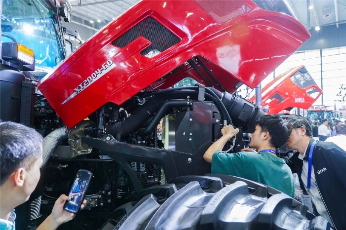 此次為徐工首次參加農(nóng)機(jī)展。展會(huì)現(xiàn)場(chǎng),來自全國(guó)各地的用戶、經(jīng)銷商、農(nóng)機(jī)愛好者匯聚一堂,共話農(nóng)機(jī)行業(yè)新技術(shù)、新趨勢(shì)、新機(jī)遇。徐工展區(qū)內(nèi),人頭攢動(dòng),凝聚徐工農(nóng)機(jī)人智慧與匠心的五款明星產(chǎn)品閃耀登場(chǎng),吸引了眾多客戶及合作伙伴熱情咨詢、現(xiàn)場(chǎng)商談,全方位展示了“高技術(shù)、高質(zhì)量、高性價(jià)比”大型化、成套化產(chǎn)品的風(fēng)采。