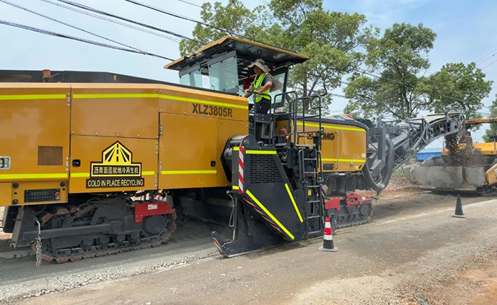 為了徹底修復(fù)路面,減輕交通壓力,盡快恢復(fù)通車,同時(shí)降低施工成本,經(jīng)過施工方案論證,采用可一次再生整幅車道的徐工XLZ3805R冷再生機(jī)的高效就地冷再生技術(shù)進(jìn)行大修。