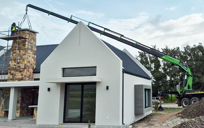 在海外某建筑工地現(xiàn)場可以看到,徐工GSQZ860折疊臂隨車起重機加裝兩節(jié)手動臂,輕松跨越建筑物二樓復雜的鋼結(jié)構(gòu),完成了高處的物料轉(zhuǎn)運作業(yè),優(yōu)越跨障能力和穩(wěn)定作業(yè)表現(xiàn)獲得了現(xiàn)場施工人員的認可和好評。