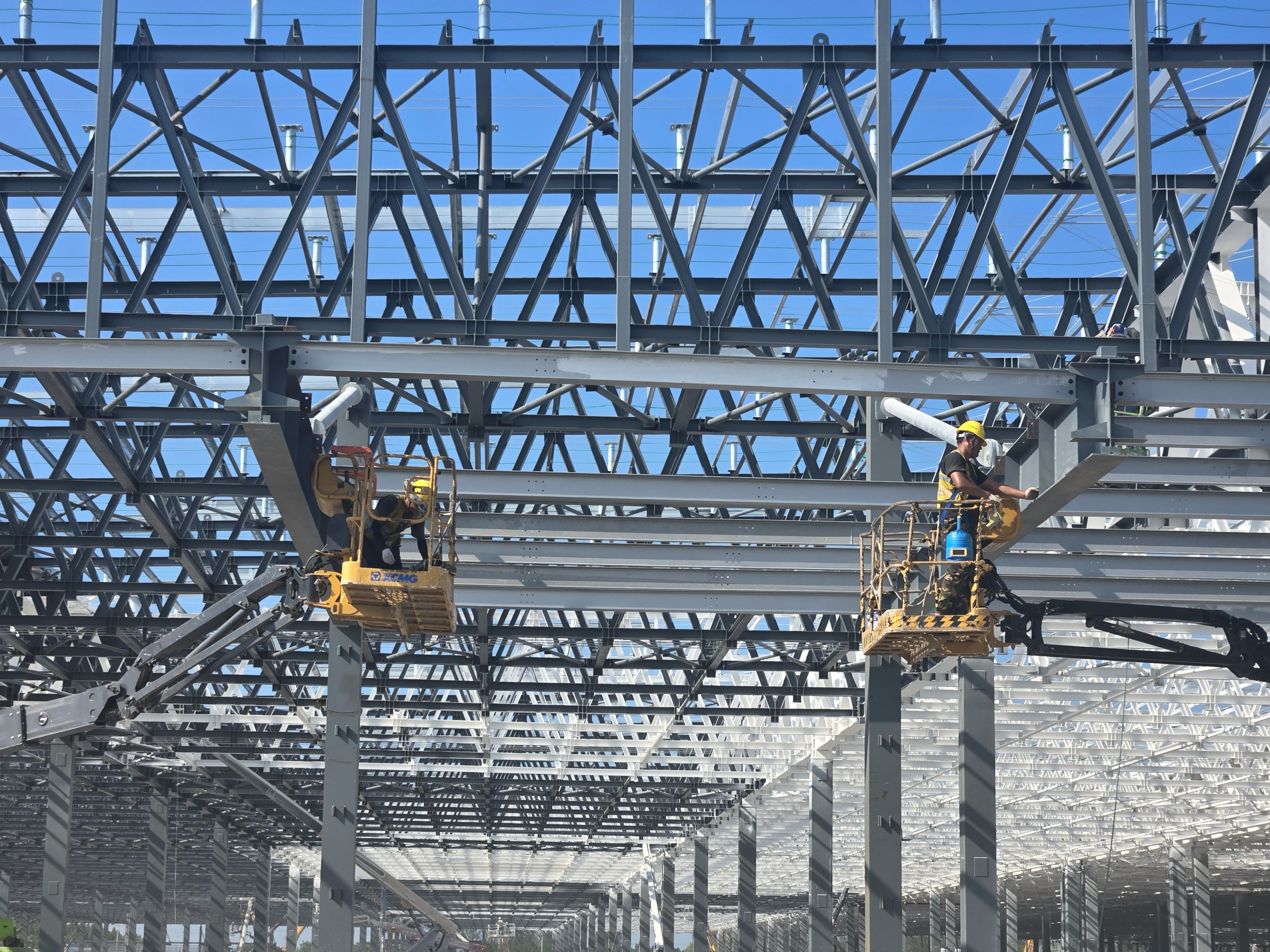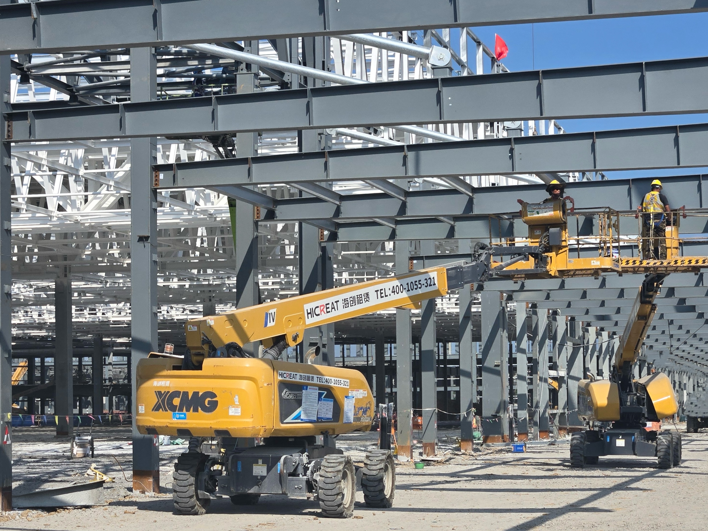在施工現(xiàn)場,多臺徐工高空作業(yè)平臺同時作業(yè)。XGS28K 伸展長臂,將施工人員和工具平穩(wěn)送至指定高度,其快速的升降和回轉(zhuǎn)動作大大縮短了單個作業(yè)點(diǎn)位的施工時間。XGS34K 則在大面積高空作業(yè)區(qū)域展現(xiàn)出高效率,大范圍的作業(yè)覆蓋能力減少了設(shè)備頻繁移位的時間損耗。XGS22K 于狹窄區(qū)域靈活補(bǔ)位,確保施工進(jìn)程無死角推進(jìn)。它們相互配合,使蔚來汽車三期項(xiàng)目的高空施工環(huán)節(jié)如行云流水般順暢,有效提升了整體施工效率,大幅縮短了項(xiàng)目工期。