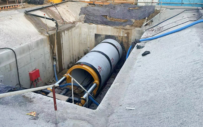 本次頂管穿越巖層為強風(fēng)化片麻巖層,與上覆砂層最小厚度僅為1m,頂進(jìn)時有較大塌方風(fēng)險。為了確保頂管施工安全,客戶自行采購了國內(nèi)先進(jìn)的徐工XDN1800-R“泥水平衡”巖石頂管設(shè)備。