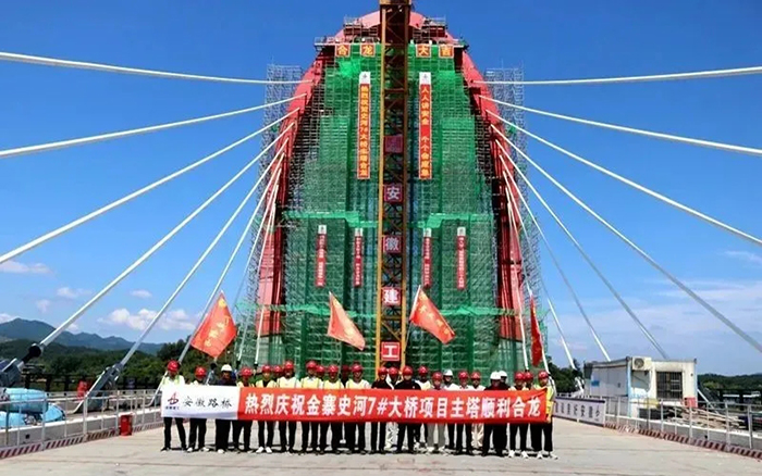 金寨史河7#大橋全長629米,采用“紅色搖籃”造型,是安徽省金寨縣發(fā)展紅色文旅產(chǎn)業(yè)的重要新地標(biāo)建筑,也是安徽省境內(nèi)造型最美觀最獨(dú)特,集人文歷史、防汛抗洪、交通運(yùn)輸功能為一體的橋梁工程。