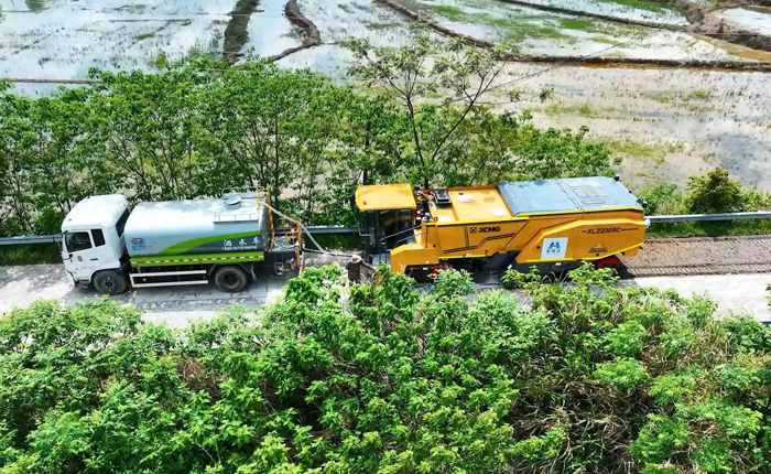 針對這些痛點,徐工智慧施工技術(shù)成套道路裝備全場景解決方案,專門針對鄉(xiāng)村道路施工場景,制定了適配的場景解決方案。該方案融合了推土、平地等多項3D控制技術(shù),并配備水泥路面冷再生機(jī),實現(xiàn)了全斷面的數(shù)據(jù)融合,有效消除了原有路面的缺陷。特別值得一提的是,該方案將北斗定位技術(shù)與慣性導(dǎo)航系統(tǒng)相結(jié)合,巧妙解決了在定位信號不佳區(qū)域的施工難題。