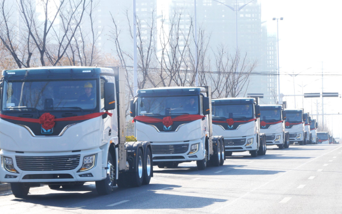 “我宣布,徐工新能源牽引車百臺(tái)交付暨千臺(tái)簽約儀式圓滿禮成,發(fā)車!”徐工集團(tuán)副總經(jīng)理,徐工汽車總經(jīng)理、黨委書記夏泳泳一聲令下,百臺(tái)徐工新能源牽引車隊(duì)列整齊、邁步向前,為更多區(qū)域“雙碳”目標(biāo)實(shí)現(xiàn)作出更大貢獻(xiàn)。
