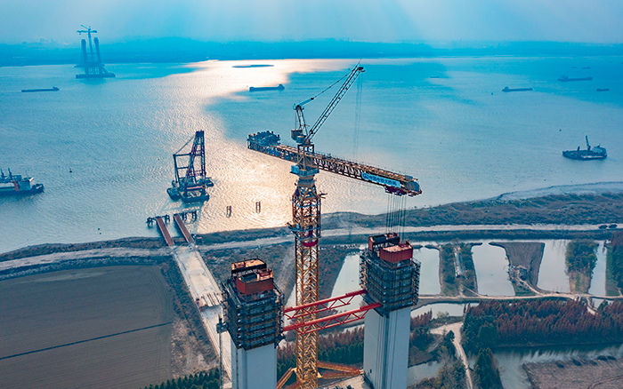 在此次張靖皋長(zhǎng)江大橋建設(shè),XGT15000-600S再次贏得施工方“技術(shù)先進(jìn)、安全可靠、吊裝能力強(qiáng)、操作平穩(wěn)、就位精準(zhǔn)、安拆效率高、智能化水平高、施工效益顯著”的高度肯定。
