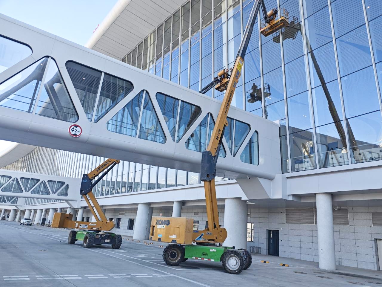 據(jù)悉,該體育館玻璃幕墻因長期使用出現(xiàn)局部損壞,需進(jìn)行高空檢修和維護(hù)。施工過程中,徐工XGS28ACK-Li搭載專業(yè)人員升至20米高空,對外墻進(jìn)行了全面檢查和維修,其精準(zhǔn)的操控性和寬敞的工作平臺確保了施工人員的安全,同時(shí)提高了工作效率。此外,車輛的環(huán)保低噪音設(shè)計(jì)也減少了對場館周邊環(huán)境的影響。
