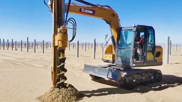與以往常規(guī)項(xiàng)目不同,此次徐工挖掘機(jī)主要擔(dān)任光伏樁的鋪設(shè)工作,通過改裝振動(dòng)錘和引孔機(jī)等多功能屬具,有效滿足現(xiàn)場多元化施工需求。