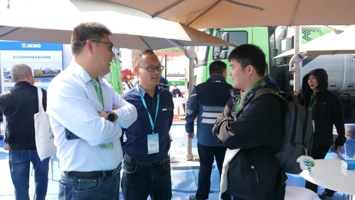 徐工新能源產(chǎn)品在展會的精彩亮相,吸引了大批來賓前往參觀咨詢。徐工環(huán)境相關(guān)領(lǐng)導(dǎo)陪同協(xié)會會長陳永生一行在徐工展位參觀交流,向其詳細介紹了徐工參展的新產(chǎn)品的特色亮點及產(chǎn)品優(yōu)勢,并表示徐工將不斷推進新能源產(chǎn)品技術(shù)研發(fā),用更多優(yōu)質(zhì)產(chǎn)品搶占高端市場,全面推進產(chǎn)業(yè)高端化、智能化、綠色化、服務(wù)化、國際化“五化”轉(zhuǎn)型升級。