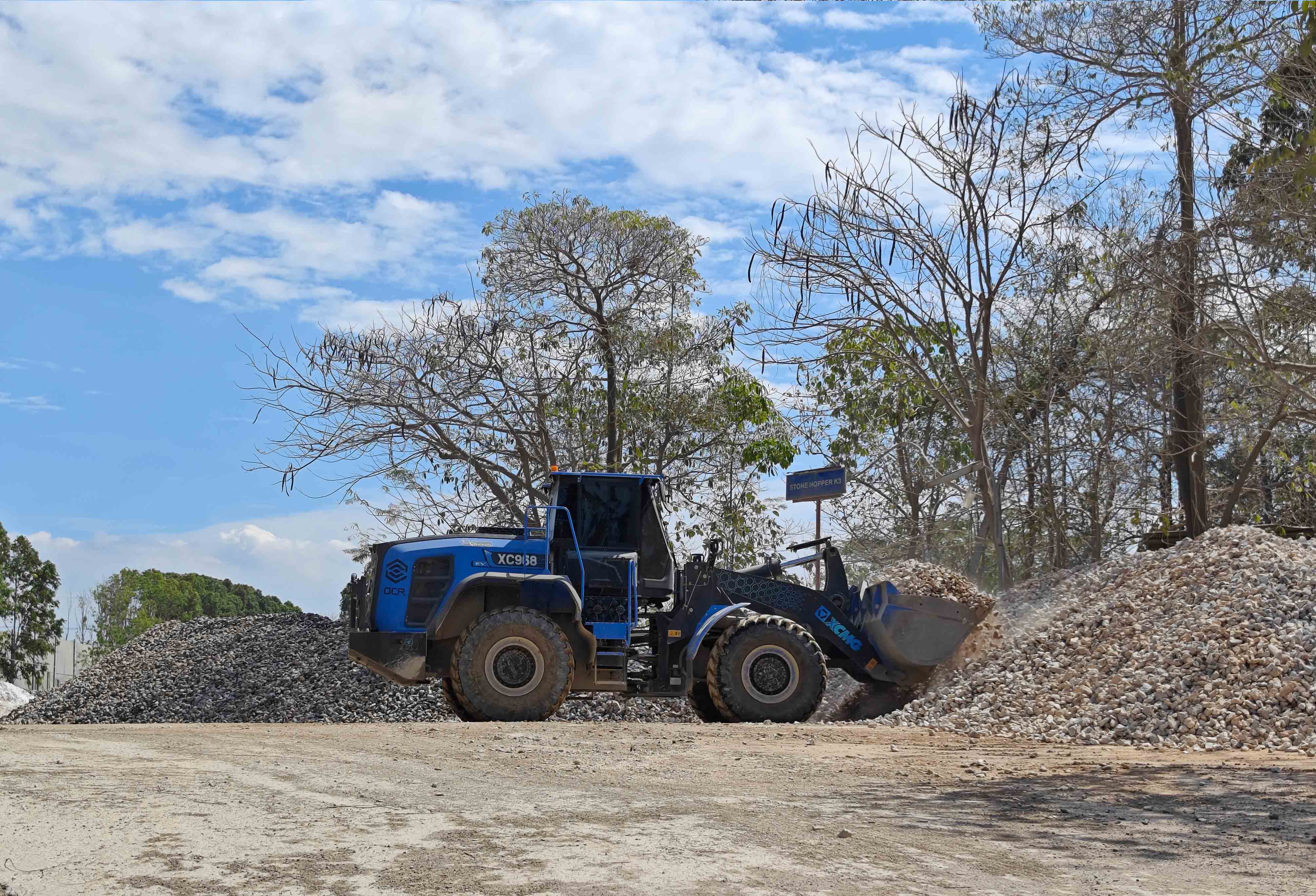 礦山生產,作業(yè)時間長,物料堅硬密度高,道路崎嶇,工況較為險重。徐工XC968-EV純電動裝載機的新能源優(yōu)勢,在礦道端的鏟裝作業(yè)優(yōu)勢非常明顯,相對密閉空間內,零排放、低噪音對工段一起作業(yè)的戶外工作人員的健康非常友好。