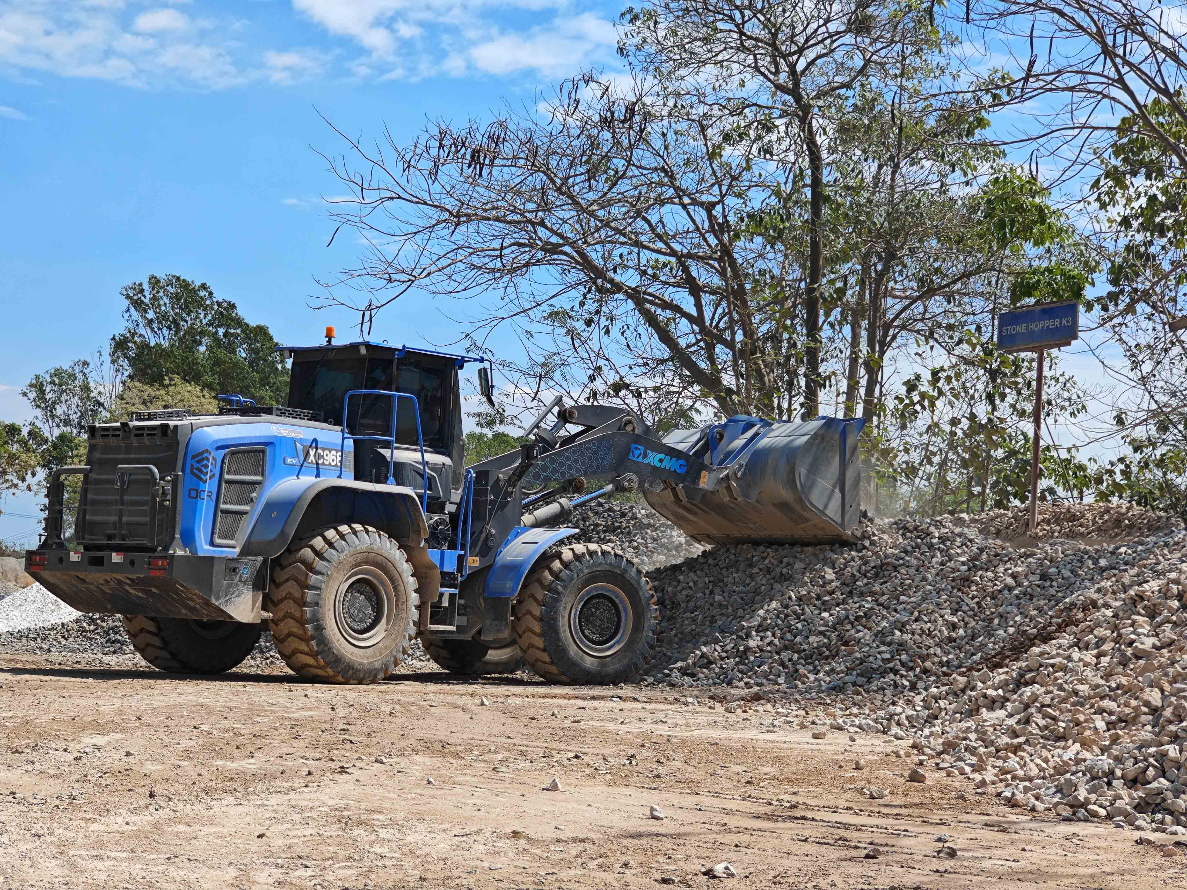 礦石從采掘面一斗又一斗連續(xù)不斷被送至周轉場,“青山綠”涂裝的徐工XC968-EV往返穿梭其間,形成一道綠色風景線,推動著當?shù)氐V山綠色化建設落地。