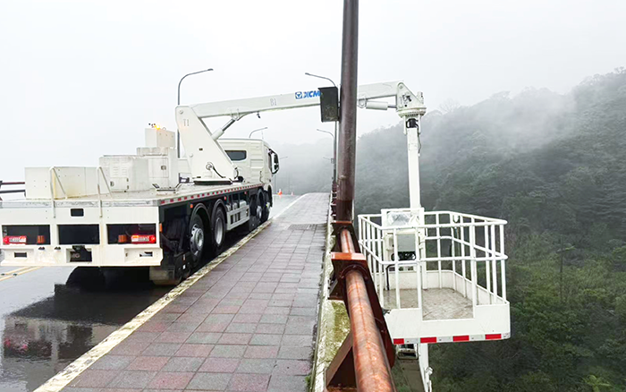 在檢測(cè)現(xiàn)場(chǎng),徐工 QJZ18 大顯身手。其最大跨寬 4.4 米、最大跨高 5.6 米,水平作業(yè)幅度達(dá) 18 米,輕松跨越復(fù)雜橋體,快速抵達(dá)指定檢測(cè)點(diǎn)。施工單位現(xiàn)場(chǎng)負(fù)責(zé)人感慨:“以前檢測(cè)這種大橋,調(diào)整設(shè)備位置耗時(shí)久,效率低,現(xiàn)在有了徐工 QJZ18,效率大幅提升。” 其 270kg 承載的作業(yè)平臺(tái),讓檢測(cè)人員能便捷攜帶儀器,細(xì)致檢測(cè)橋梁各處。