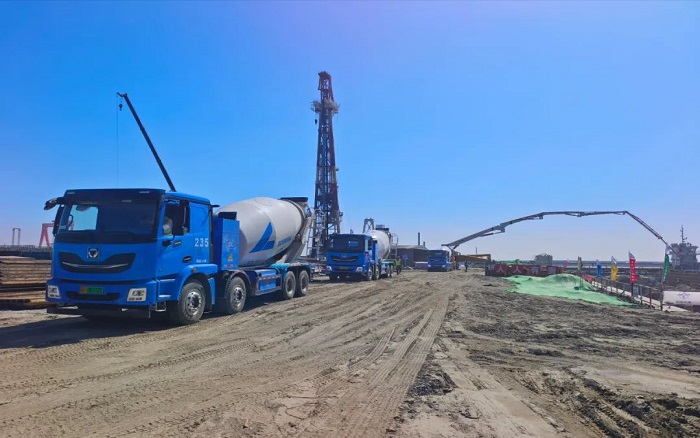 截至目前已完成 30 萬方混凝土泵送與 45 萬方運(yùn)輸作業(yè),以高效穩(wěn)定的表現(xiàn)保障工程建設(shè)快馬加鞭。