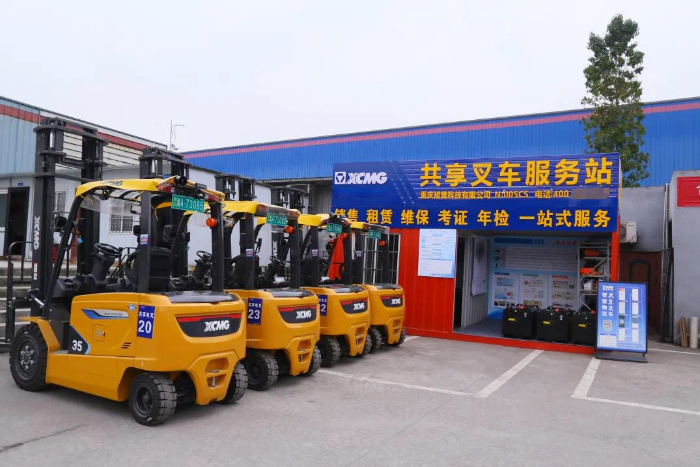 在重慶某大型物流園區(qū),累計超120臺徐工新能源共享叉車被投入使用。這些共享叉車24小時待命,園區(qū)內的服務站里不時有老板、叉車司機進行充換電和現(xiàn)場掃碼解鎖。