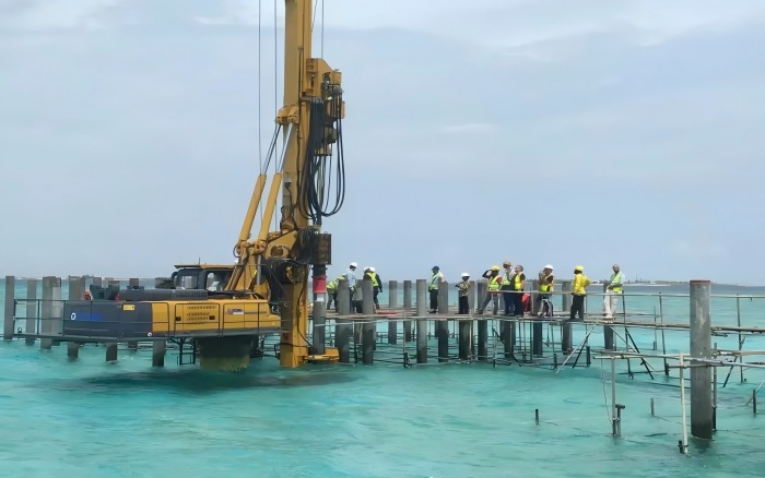 本次施工項(xiàng)目地質(zhì)條件復(fù)雜,表層為松散砂質(zhì)土,下層為密實(shí)珊瑚巖層,對樁基施工的精度與設(shè)備性能提出了嚴(yán)峻挑戰(zhàn)。