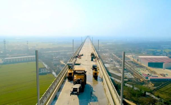 通過毫米級精度控制技術(shù),實現(xiàn)了復雜橋區(qū)多場景施工的高效協(xié)同,有效提升了橋面平整度與施工效率,確保了全球最大跨度斜拉橋的鋪裝質(zhì)量。