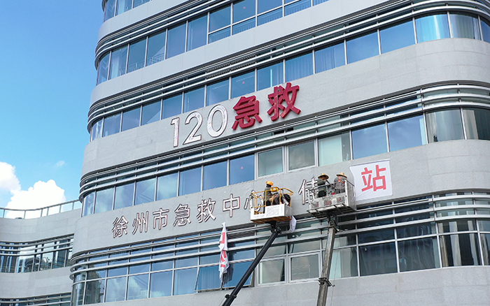 徐州某醫(yī)院樓宇外立面掛字施工