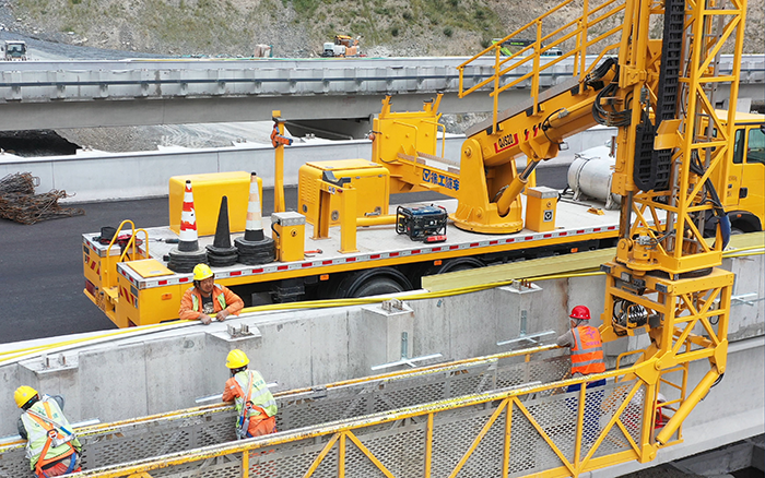 復(fù)雜地質(zhì)構(gòu)造曾讓傳統(tǒng)施工因落石、涌水屢屢受阻,而徐工橋檢車(chē)的桁架能輕松跨越數(shù)米寬裂隙區(qū),讓 “卡脖子” 地帶變 “加速帶”。