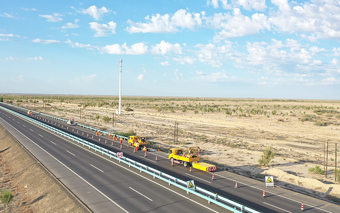 它們穩(wěn)穩(wěn)扎在對向車道,徐工金車身在周遭環(huán)境中格外顯眼,警示燈不知疲倦地閃爍著,像兩尊盡職的崗哨,將施工區(qū)域與潛在危險清晰分隔。當?shù)厥姓块T視施工安全為首位,選在車流量少的時段施工,將徐工防撞緩沖車部署在后方。有了它們在旁,施工區(qū)域仿佛被筑起一道堅固的防護墻,為施工筑起了一道可靠的安全防線。