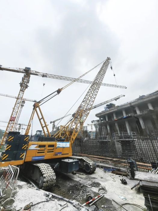 在如此高難度的施工環(huán)境中,XGC110A展現(xiàn)出的卓越穩(wěn)定性和微動性,成為項目攻堅克難的核心利器。其精準的操控猶如“穿針引線”,在鋼筋森林的方寸之地游刃有余,有效保障了多工序協(xié)同推進,為工程高效推進提供了堅實保障。