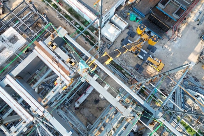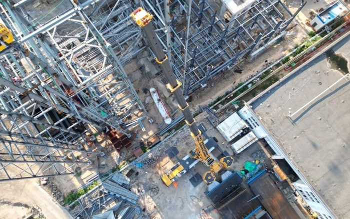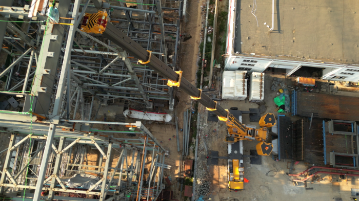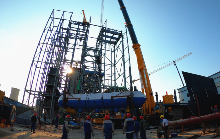 由于場地狹窄,障礙物環(huán)繞,集氣包還需精準(zhǔn)送入已建車間內(nèi)部,車間上方同樣阻礙重重,給施工增加了難度。