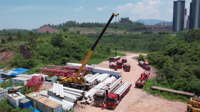 管樁被穩(wěn)穩(wěn)托舉,精準(zhǔn)高效。