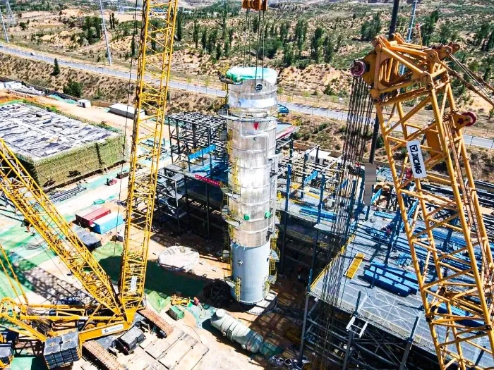 近日,在某大型多晶硅產(chǎn)業(yè)升級項目現(xiàn)場,徐工QUY450(450噸級)履帶起重機(jī)攜手XGC12000(800噸級)履帶起重機(jī)精密協(xié)同,成功完成項目首臺大型精餾塔吊裝任務(wù)。