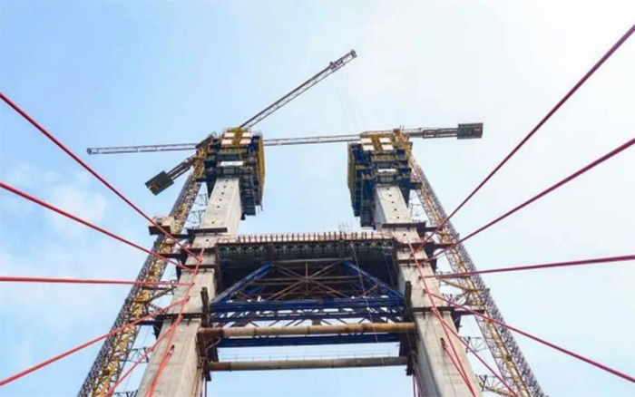 隨著4號主塔、3號主塔順利封頂,大橋建設步入快車道。