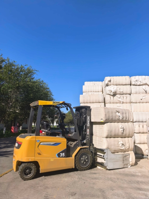 棉花廠的作業(yè)場景復雜,原材料搬運與成品轉運任務繁重。以往,傳統(tǒng)搬運設備在效率、環(huán)保等方面存在諸多局限。而此次進駐的徐工鯤鵬電動平衡重叉車,擁有強大的性能優(yōu)勢,堪稱棉花廠物料搬運的 “理想搭檔”。它采用鉛鋰同平臺設計,能滿足不同場景、不同客戶多樣化的能源需求。無論是在原材料堆放區(qū)搬運沉重的棉花包,還是在成品倉庫轉運打包好的棉產(chǎn)品,都能輕松應對。其驅動系統(tǒng)、起升系統(tǒng)均采用免維護全交流大功率電機,前輪電機獨立控制,動力強勁,大大提升了搬運效率。