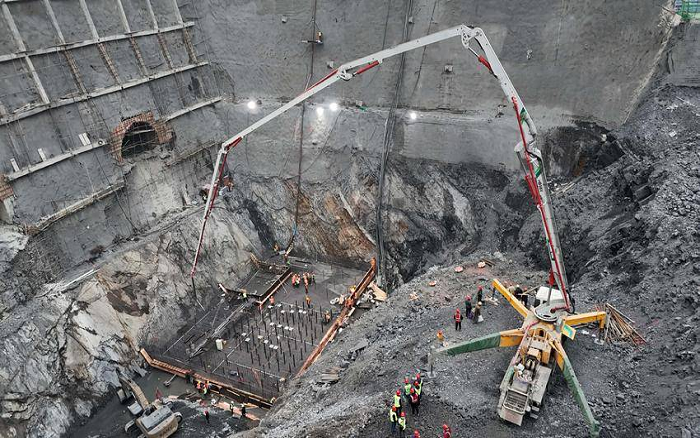 其輸水系統(tǒng)施工,堪稱整個(gè)工程的"咽喉關(guān)卡"——澆筑精度高、地形復(fù)雜、施工狹窄、單日2000方大方量....成為擺在建設(shè)團(tuán)隊(duì)面前的"極限挑戰(zhàn)"。