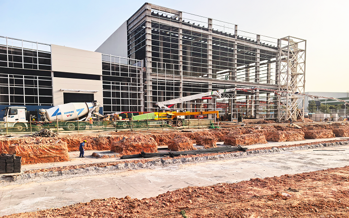 近日,在中國五冶承建的廈門新建智能化兩片罐生產基地項目現場。