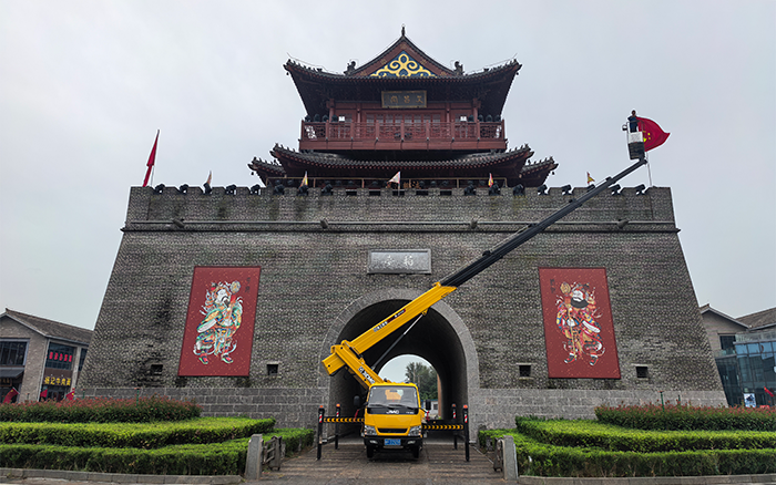 文昌閣前,一抹抹 “中國紅” 悄然升起。徐工 M 系列 GKS32 高空作業(yè)車伸展長臂,穩(wěn)穩(wěn)將施工人員送達高空作業(yè)點。最大作業(yè)高度32 米,精準覆蓋建筑立面,轉臺 360° 連續(xù)回轉間,國旗已平穩(wěn)就位。