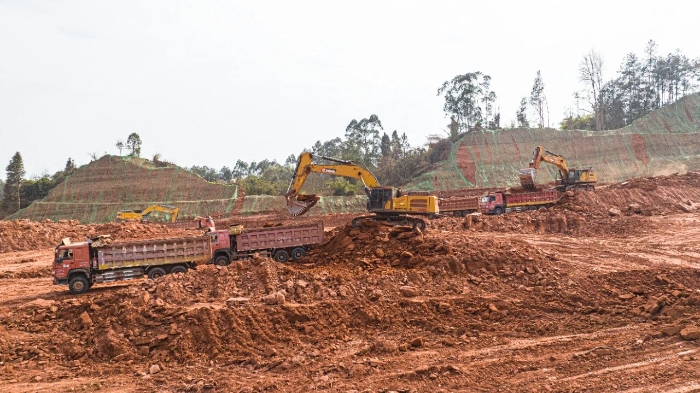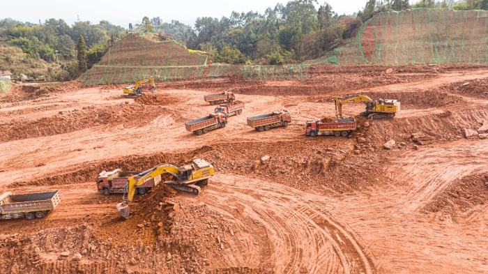 四川樂山,一座關(guān)乎區(qū)域經(jīng)濟(jì)發(fā)展的重點工業(yè)園區(qū)正拔地而起。施工現(xiàn)場,機(jī)械的轟鳴聲奏響著發(fā)展的號角,運輸車輛如織般往來穿梭,一派生機(jī)勃勃的建設(shè)圖景在此鋪展。在這幅宏大的畫卷中央,十余臺身披“徐工金”的60噸級大型挖掘機(jī)尤為醒目,它們以其沉穩(wěn)有力的臂膀,成為推進(jìn)項目進(jìn)程當(dāng)之無愧的“主力軍”。