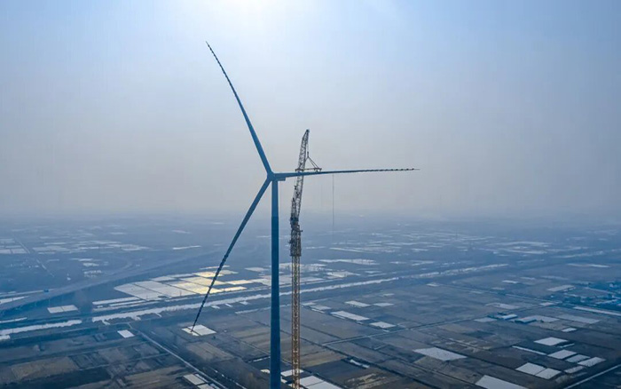 在山東魚臺(tái)風(fēng)電項(xiàng)目建設(shè)現(xiàn)場(chǎng)