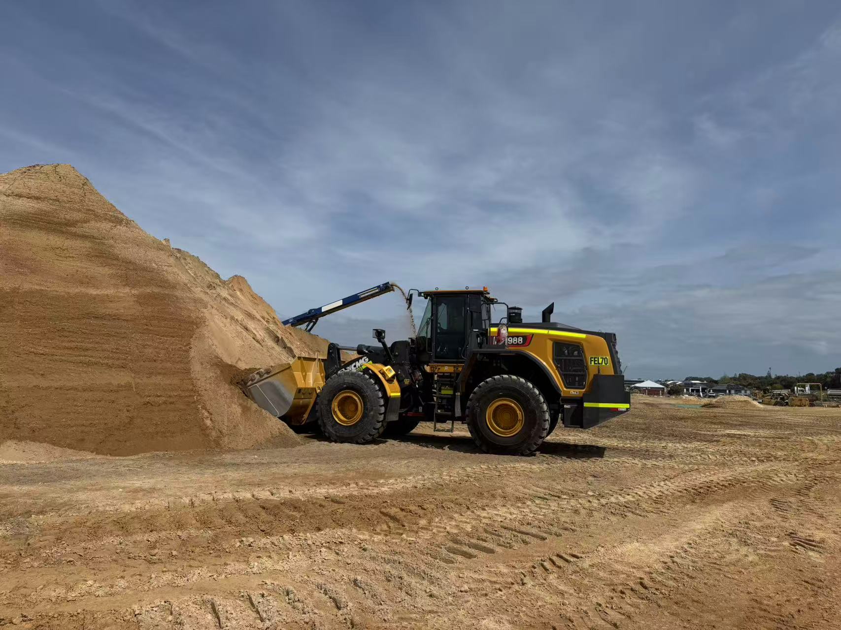 澳洲有星羅棋布的島嶼,也有廣袤裸露的紅土地,繁忙的基建大軍讓它們適宜人類居住、發(fā)展生息。這個過程中工程裝備必不可少,效率與可靠性是當?shù)乜蛻暨x擇的核心標尺。比如砂石料場,需要高強度連續(xù)作業(yè)、佐以當?shù)囟嘧兊臍夂颍继Ц吡斯こ萄b備的入職門檻。而徐工XC988裝載機以卓越性能和堅韌品質(zhì),成為眾多當?shù)乜蛻粜刨嚨摹颁撹F巨獸”。