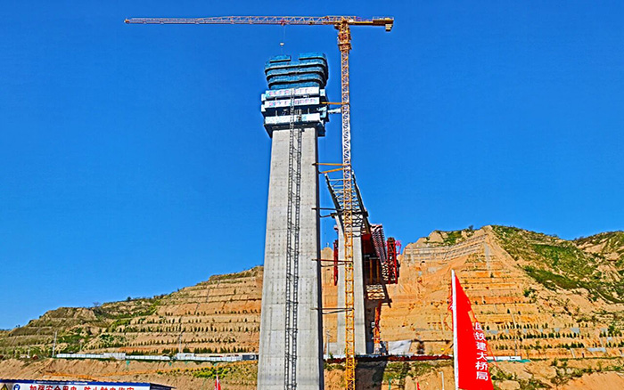徐工塔機(jī)見證主橋99米最高墩澆筑完成