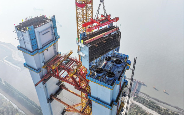 從北航道橋南北錨碇封底,到數(shù)十個大型鋼塔節(jié)段的精準吊裝,再到北主塔塔柱主體工程圓滿完工,徐工XGT15000-600S始終以“穩(wěn)扎穩(wěn)打、精工致微”的卓越表現(xiàn),持續(xù)提升主塔建設(shè)效率與作業(yè)可靠性,見證著這座世界級大橋主塔節(jié)節(jié)攀升。